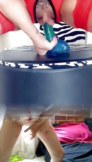 11:19un énorme faux pénis côtelé pulvérise une énorme chatte